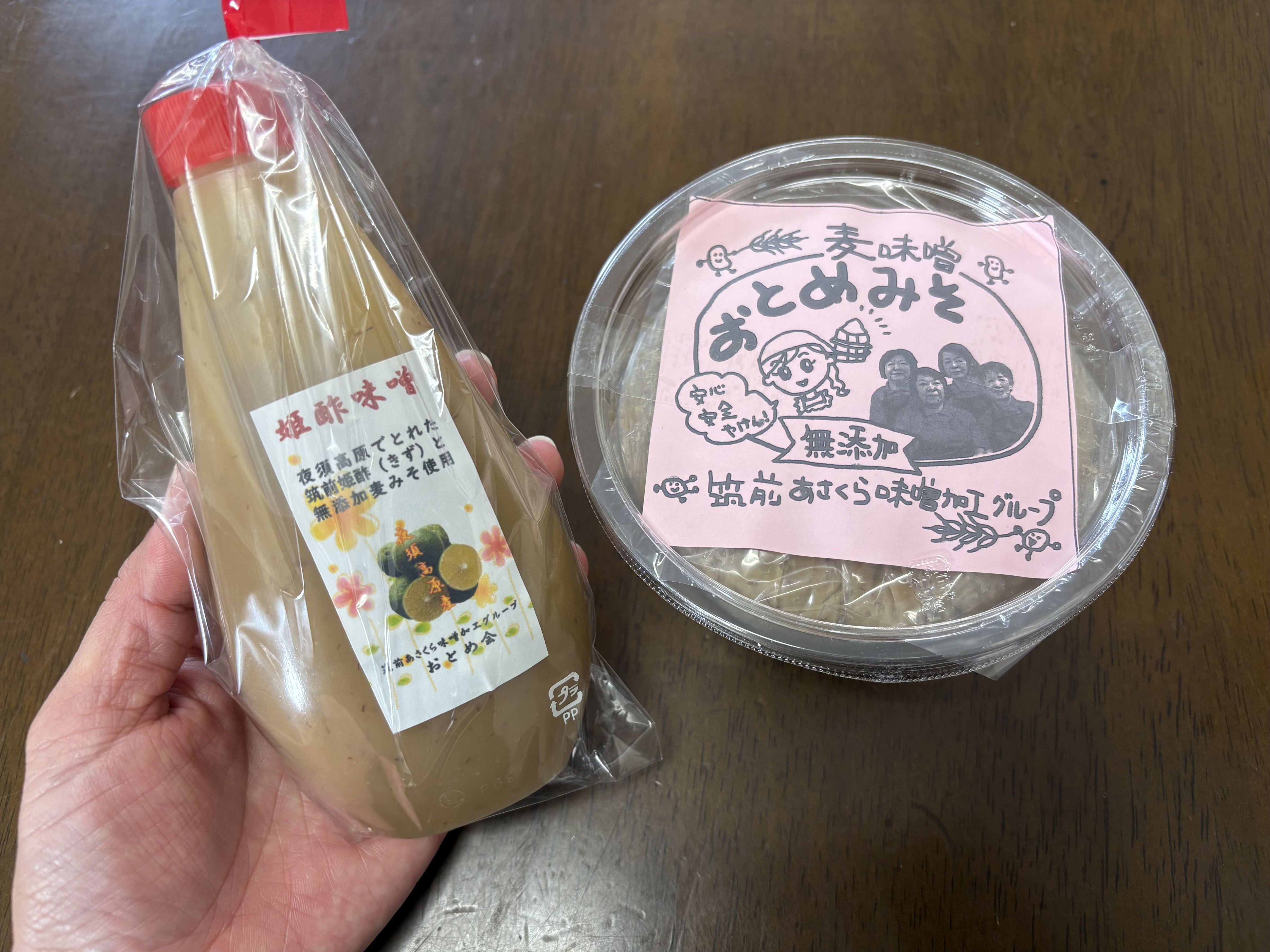 その「おとめみそ」と、筑前町の特産品の木酢をつかった酢味噌を製造販売しています。