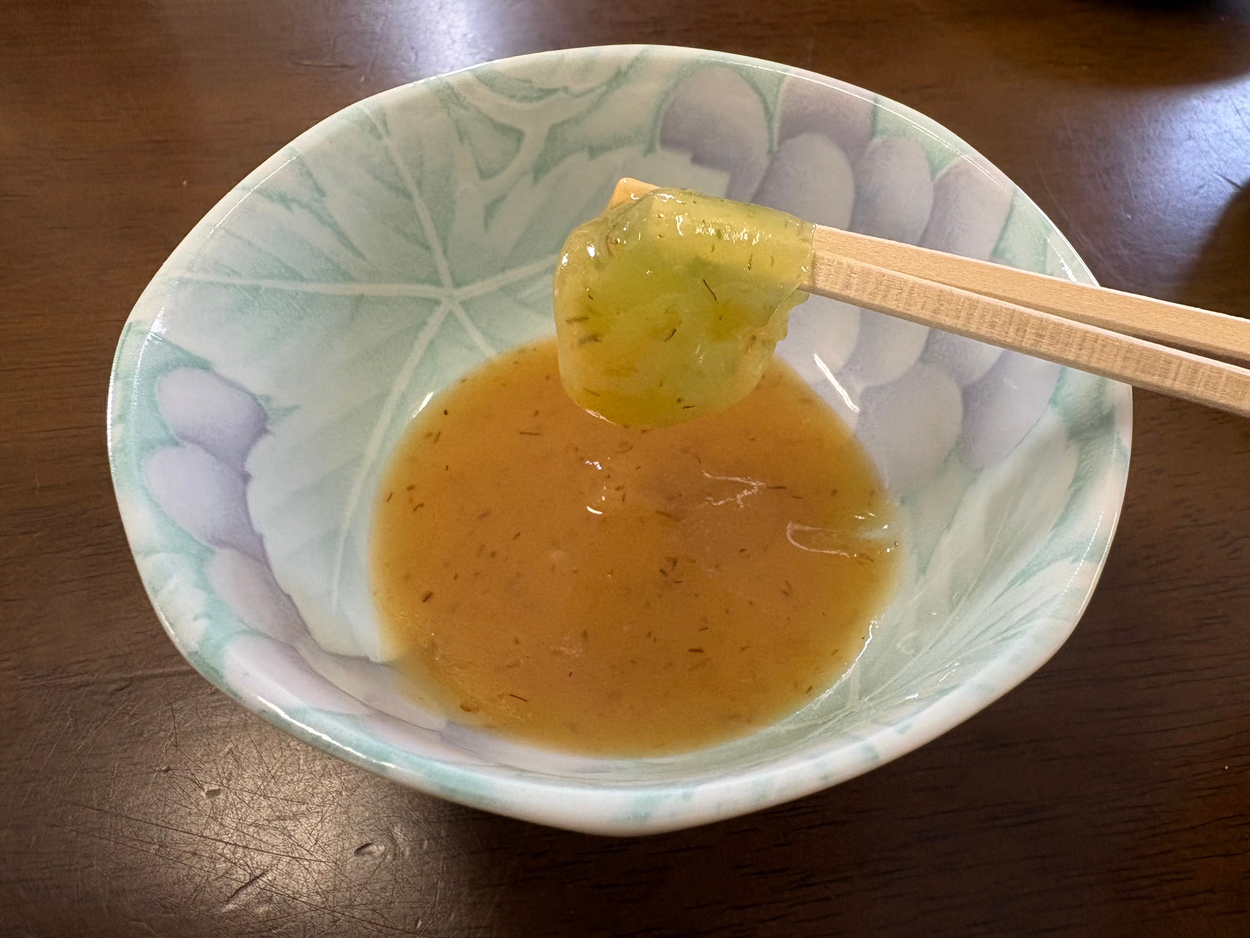 木酢を半分に切って手しぼりで木酢の果汁を搾り出します。