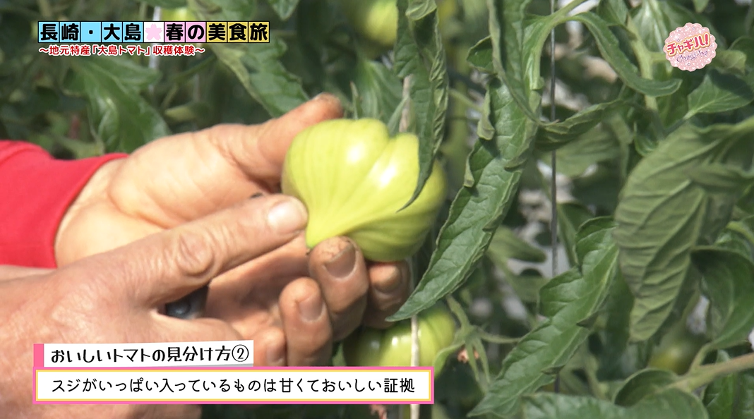 一般的なトマトの糖度は4~5度ですが、大島トマトは糖度8度以上のものだけが出荷されます。中にはイチゴやメロンに匹敵する10度を超えるものもあります。