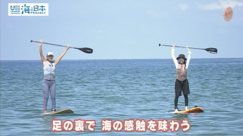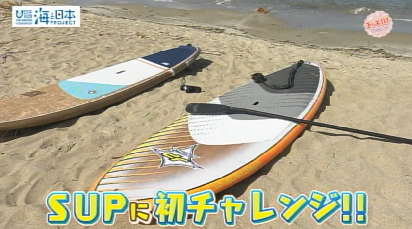 いつも笑顔を絶やさない凜咲さん。余裕の現れなのか?緊張を誤魔化すためなのか?ちょっと心配。一見、簡単そうに見えるSUPですが、海の上でバランスを取るのは難しいはず。ドキドキしながら見見守っていたスタッフたちでしたが、SUPに乗っかると、おおっ!凜咲さんあっという間に立って漕ぐことができるようになりましたー!やっぱり春香さんの教え方が上手いのでしょうね!