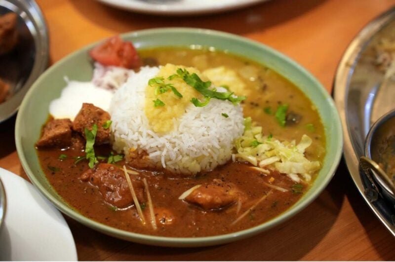 数週間前に続いて【ポラポラ食堂】で飯盒ビリヤニ再び。この前美味しかったビリヤニですが、天神路地裏にあるカレー店のスタッフ女子(?)たちが、「あのビリヤニをどうしても食べたい!!」というので引率。