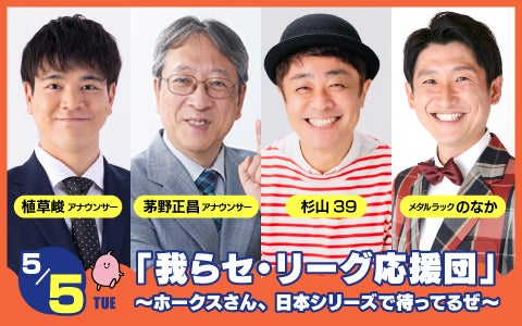 今回で6回目を迎える「我らセ・リーグ応援団」福岡に住む人はみんなホークスファン?パ・リーグファン?しかし転勤族の多い福岡はセ・リーグファンが多数いるはず。そこでパ・リーグじゃなくて、セ・リーグの魅力を前面に押し出してPRしようという番組。