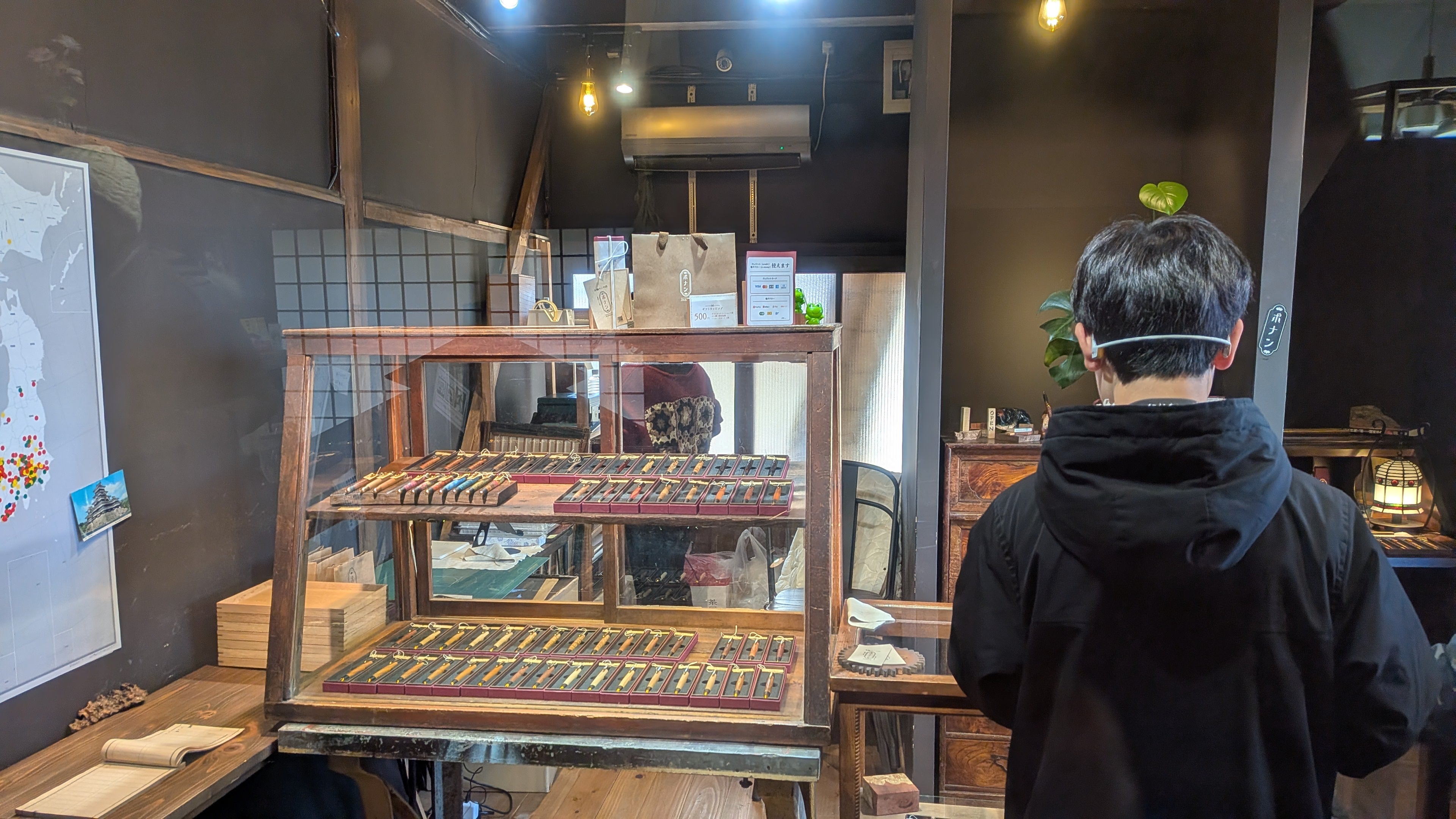 少年の退店後に、販売を担当していた柳澤このみさんに伺うと「先ほどのお客様は中学1年生、春から2年生の方でした。」と。また、「文房具や筆記具に興味をもっている方、多かったりします。実際に使う機会が多いのが学生ではあると思いますけど、それでこだわるというか自分の持っているものをこだわりたいみたいなので、こういった木軸ペンだったり、その他の筆記具を集めたりしている方もいらっしゃるようですとも教えてくださいました。さらに「不思議だと言ったら不思議なんですけど、なんか大人びている子が多い気がします」と笑っておっしゃってました。