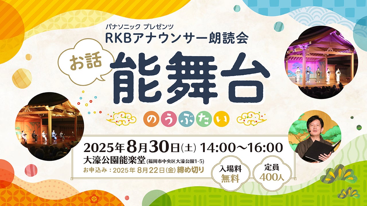大濠公園能楽堂という独特な空間で、鮮やかな照明や音響に包まれながらRKBアナウンサーが情感豊かに朗読します。