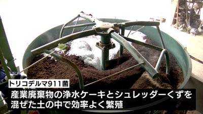 5年間に及ぶ研究で、浄水場から出る産業廃棄物の「浄水ケーキ」と、シュレッダーくずなどを混ぜた土に「トリコデルマ911菌」を入れると、効率よく繁殖することが分かりました。