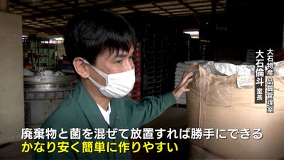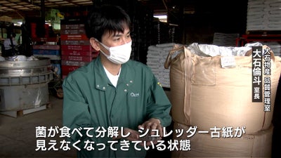 大石物産 大石倫斗品質管理室長「菌が食べて分解していって、だいぶシュレッダー古紙が見えなくなってきているような状態です。廃棄物と菌を混ぜて放置すれば勝手にできるので、かなり安いというか、簡単に作りやすいというか、そういう感じです」