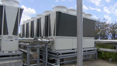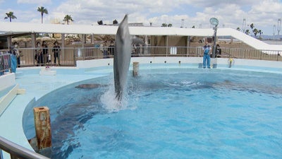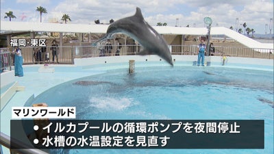 福岡市東区のマリンワールドでは、イルカのプールの循環ポンプを夜間は停止したり、水槽の水温設定を見直したりしています。