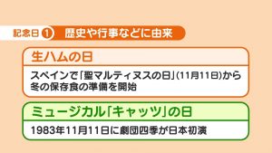 11月11日は、日本記念日協会が認定しているものだけでも59の記念日があるほか、さまざまな企業や団体が記念日にしています。