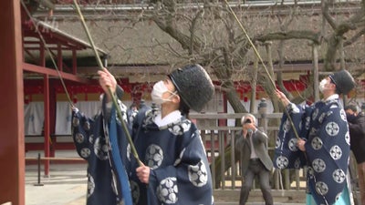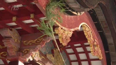 太宰府天満宮の本殿では7日朝、神職7人が長さ4メートルの笹竹を手に取り、梁や欄間などに積もったちりやほこりを丁寧に払い落としました。