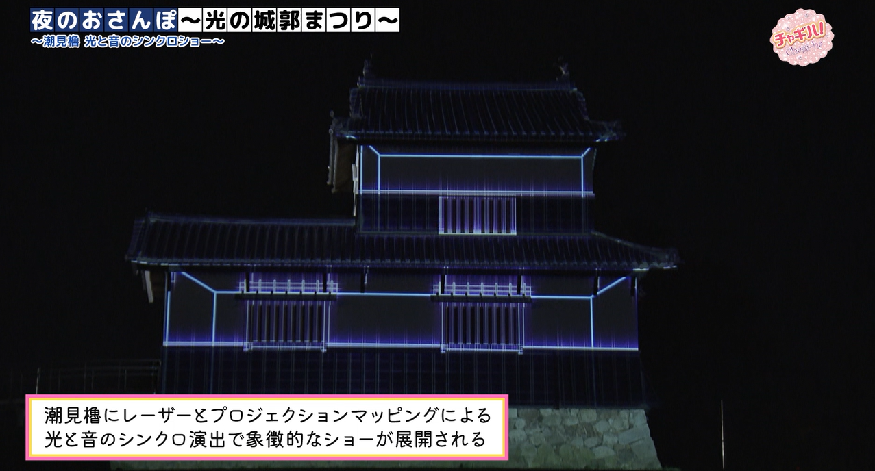 その中で、目玉となるのが、復元「潮見櫓」光と音のシンクロショー。今年3月に復元されたばかりの潮見櫓に、レーザーとプロジェクションマッピングによる光と音のシンクロ演出で、象徴的なショーが展開されます。