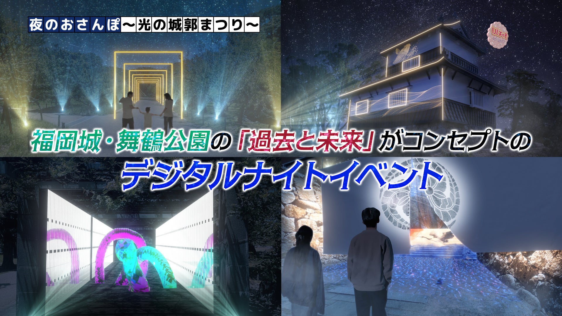 福岡城・舞鶴公園の「過去と未来」がコンセプトのデジタルナイトイベントで、デジタルの「光の城郭」とリアルな「城郭屋台街」が出現する夜の宴となっています。