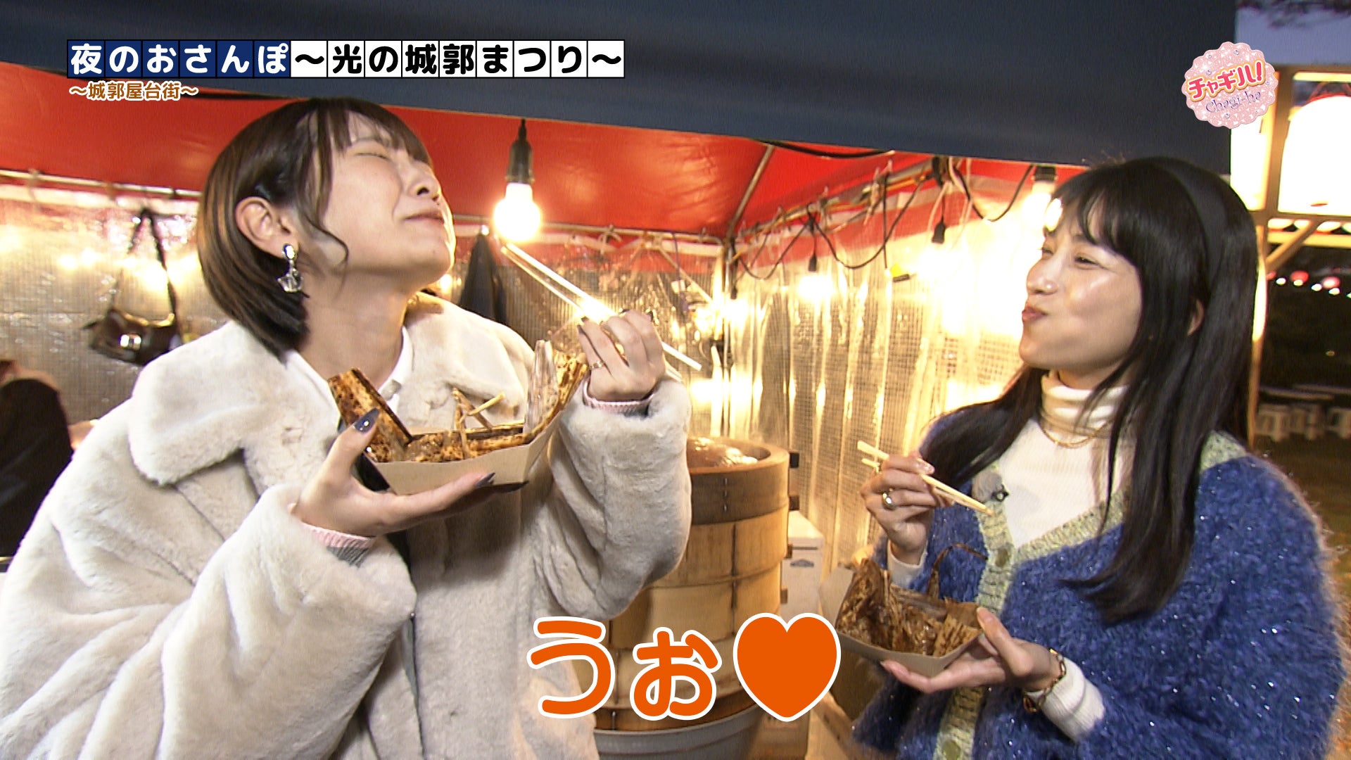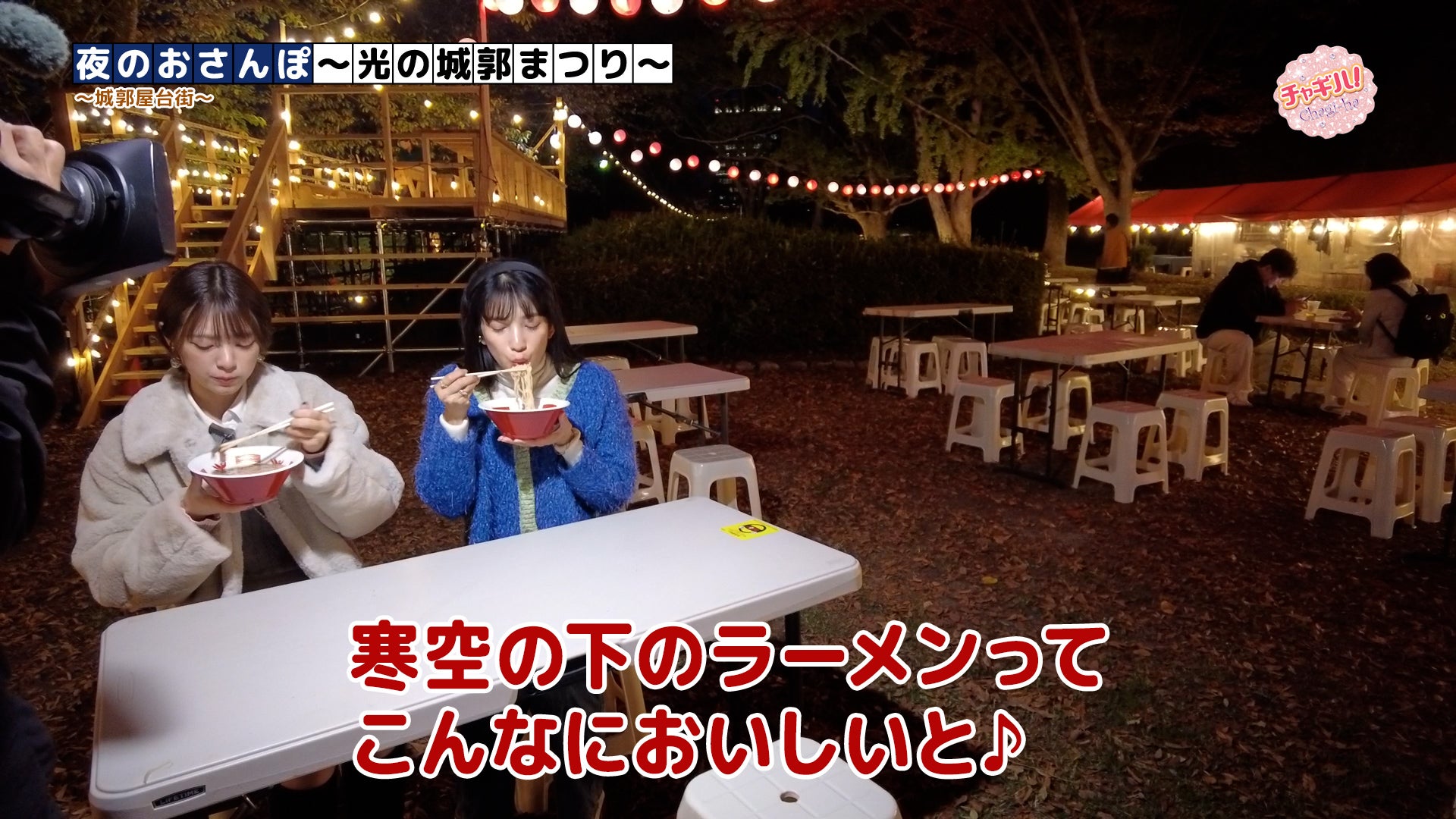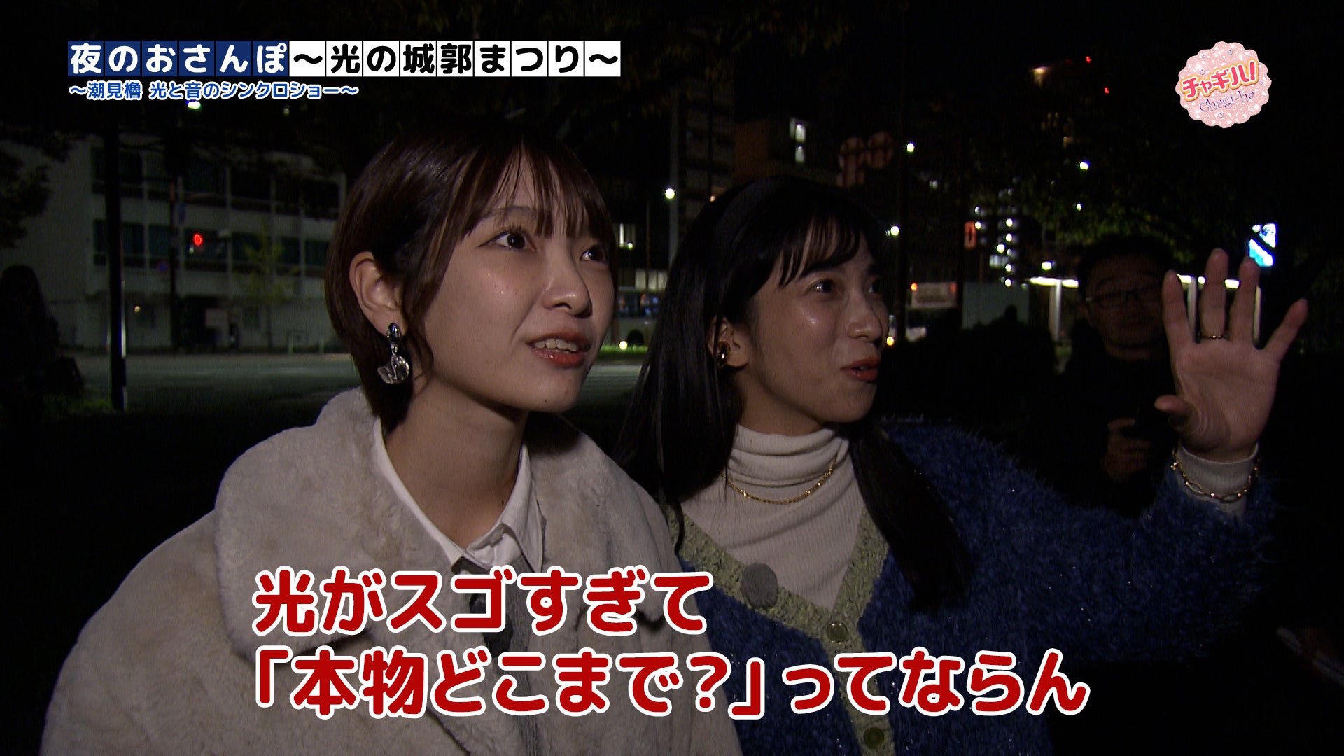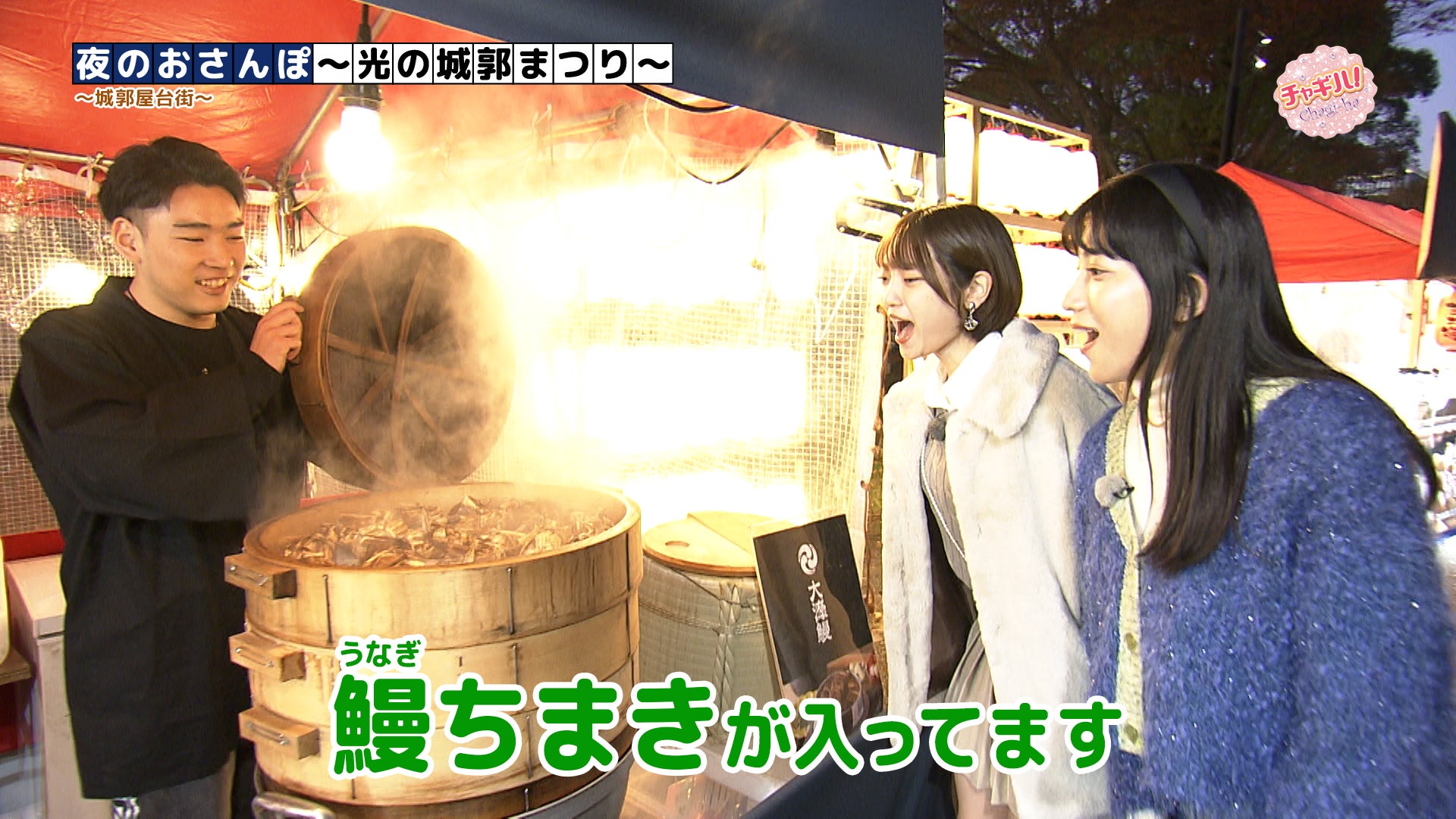 今回のチャギハ!はハウステンボスのヨーロピアン・ホーリー・クリスマスを大特集!日本初のシャンデリアツリーや噴水と花火のナイトショーなど見どころ満載です▼新人リポーターのななみと夏華が巨大クレーンゲームに挑戦!▼HKT48の大庭凜咲が、博多湾の漁師直営の魚屋を取材!