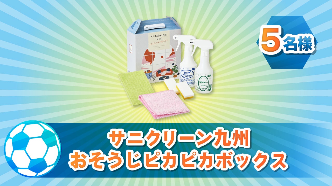 今月はサニクリーン九州から、おそうじピカピカボックスを5名様にプレゼント!こだわりが詰まったかわいいお掃除グッズの詰め合わせです。是非ご家庭でお試しください!