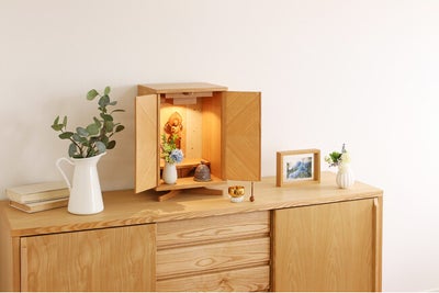 ロングセラー商品に新色が登場!クラフト感のある扉がおしゃれなコンパクト仏壇『セイル ライト』が新発売